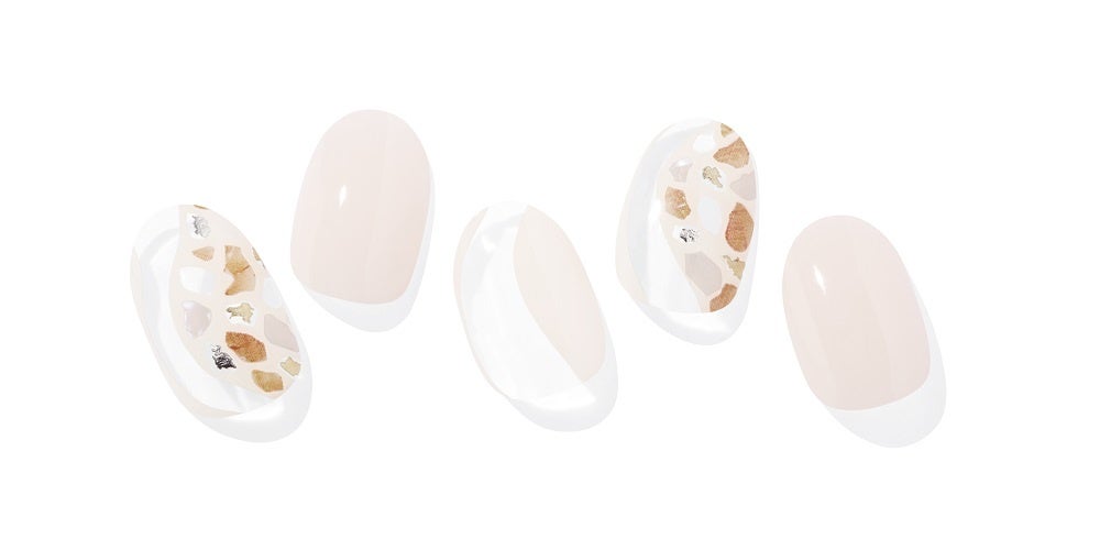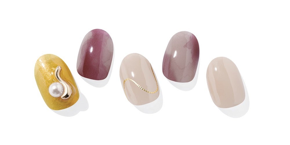 サロンの品質と⼿間を⼀枚のシールとすることで、簡単に装着できるネイルシールの⼿軽さはそのままに、本物のジェル特有の仕上がりの美しさを楽しむことができます。更に、従来のネイルシールに⽐べて、⽖へのフィット感と持続⼒が改善されたことで、第3のネイルとも呼ばれています。
