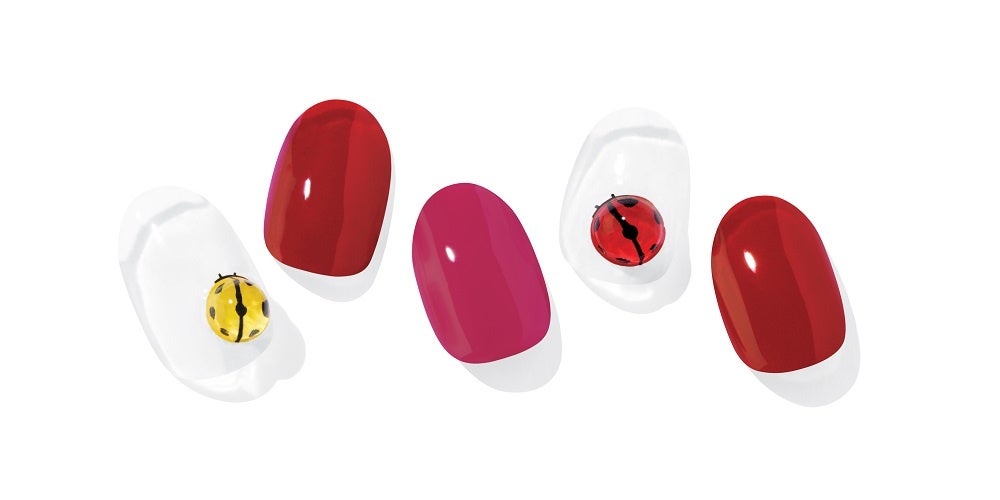 幸運のシンボル、てんとう虫がまるで指先にとまっているかのような愛らしいデザイン。爪先にあしらったてんとう虫の可愛さを際立たせるよう、ベースはあえてシンプルに。カラーは絶妙にトーンに変化をつけて個性的に。大人の遊び心をHappyに演出します。1880円