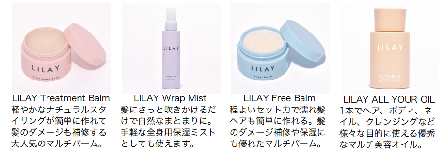 「LILAY」シリーズは、“働く日、遊びたい日、少しだけリラックスしたい日、一人一人のライフスタイルにフィットする、デイリーユースなアイテム。シンプルライフにもっと潤いを”をコンセプトに開発されたヘアケア・ボディケアプロダクト。