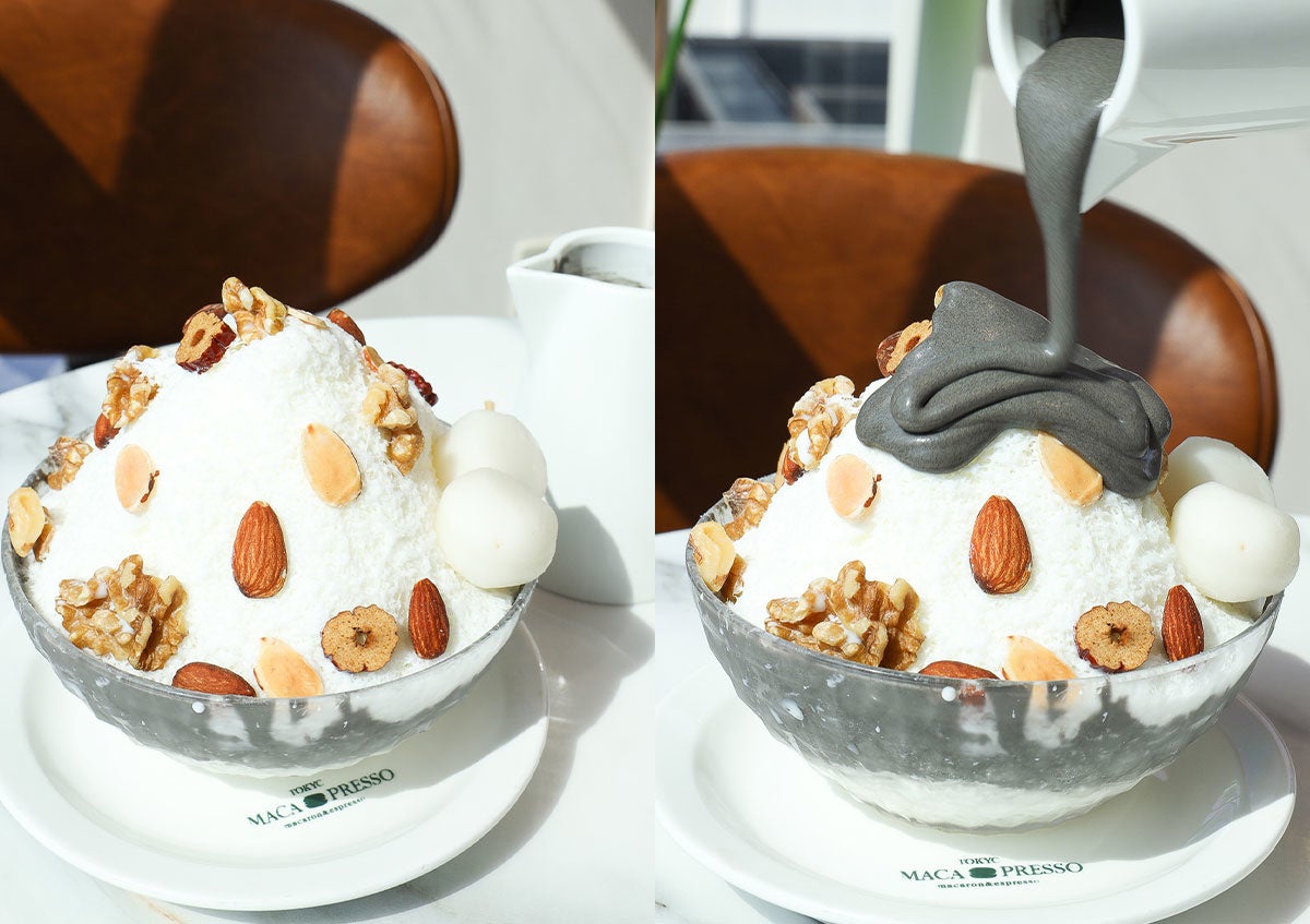 香ばしいナッツと団子のトッピングに黒ごまをたくさん入れたシロップをかけた相性抜群のビンス。黒ゴマと言えば健康食品。セサミンが豊富で抗酸化作用が強いため、老化防止や肝機能の改善、悪玉コレステロールを低下させ動脈硬化を防ぐなどの効果があります。その黒ごまと団子、ナッツの出会い!香ばしいビンスが食べたいなら黒ごまビンス。