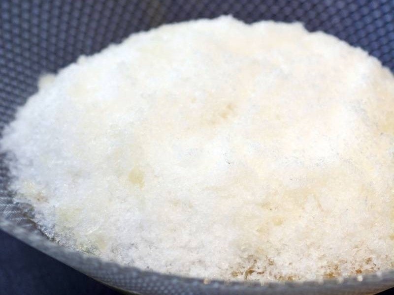 器の中に雪が積もったようで、見た目も清涼感抜群です! それにしても、どっさりのかき氷しか見えないのですが……。本当に中に冷麺が入っているのでしょうか??