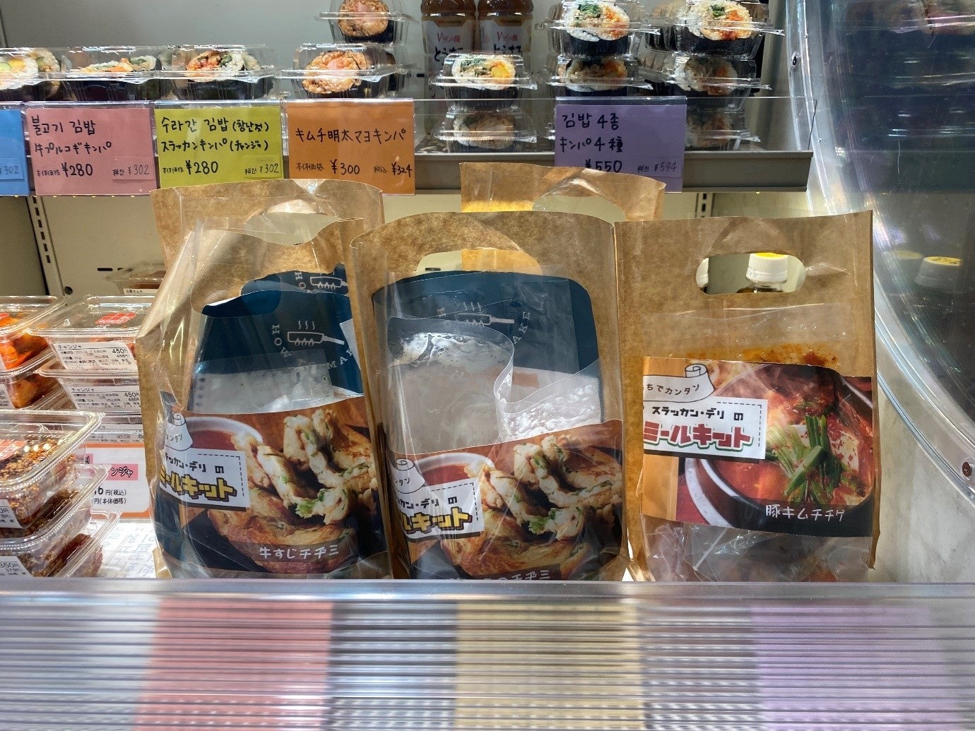 そして、今大人気だというのがこちらのミールキット。カットされた野菜や分量通りの粉が入っているので、混ぜて火を加えるだけで本格的なチヂミやチゲがお家で楽しめます。これで今日の晩御飯も決まりですね!