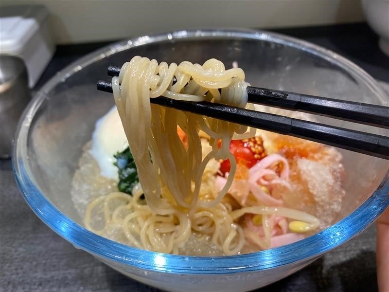 もちもちの食感の麺は、夏バテの時にもつるつるっといただけそう。かき氷がしんなり溶けたスープとの相性も最高です。夏の間は何度もリピートしたくなっちゃいます!