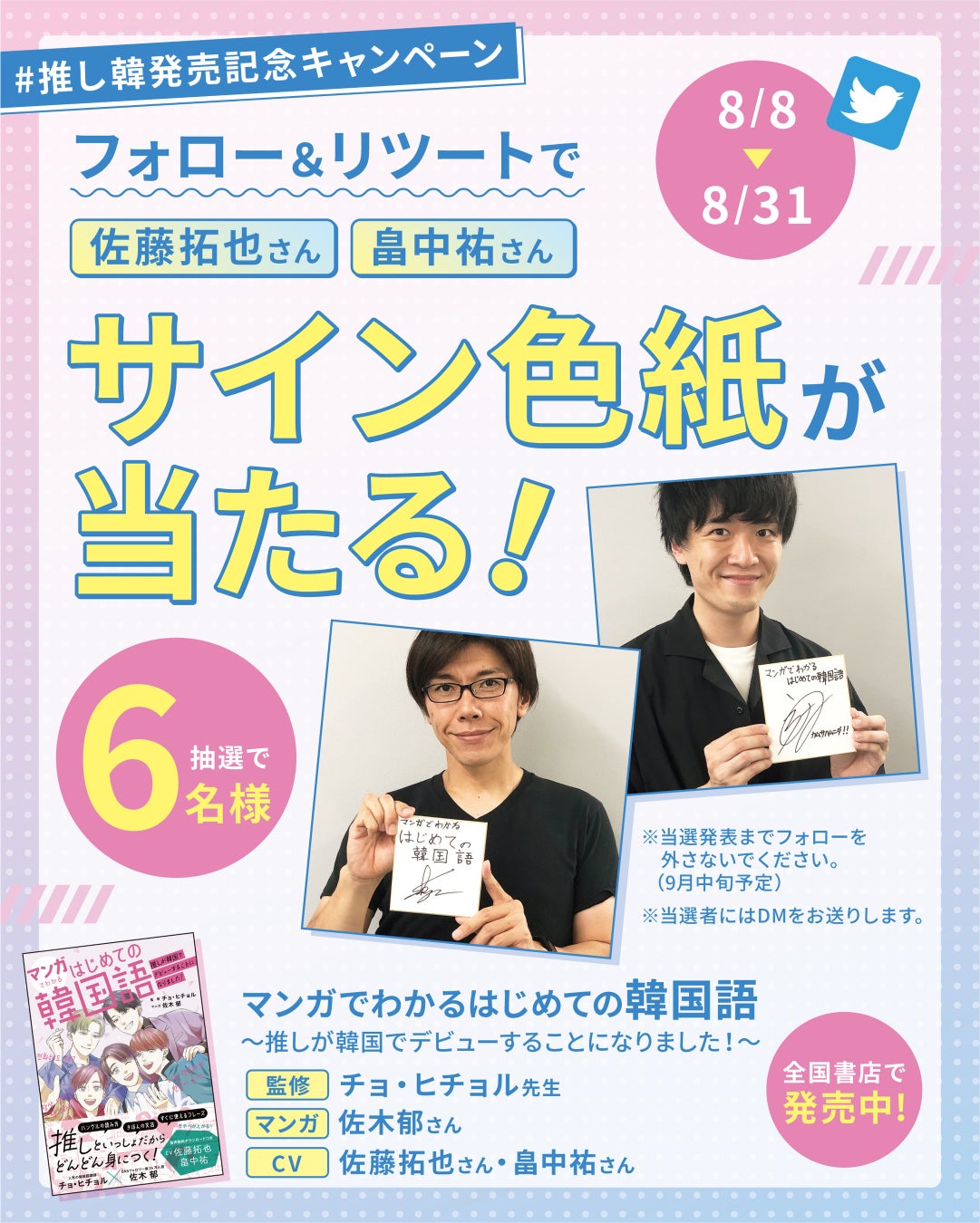 さらに発売を記念して、西東社のTwitterでは『佐藤拓也さん&畠中祐さんのサイン色紙が当たる!キャンペーン』を実施します。