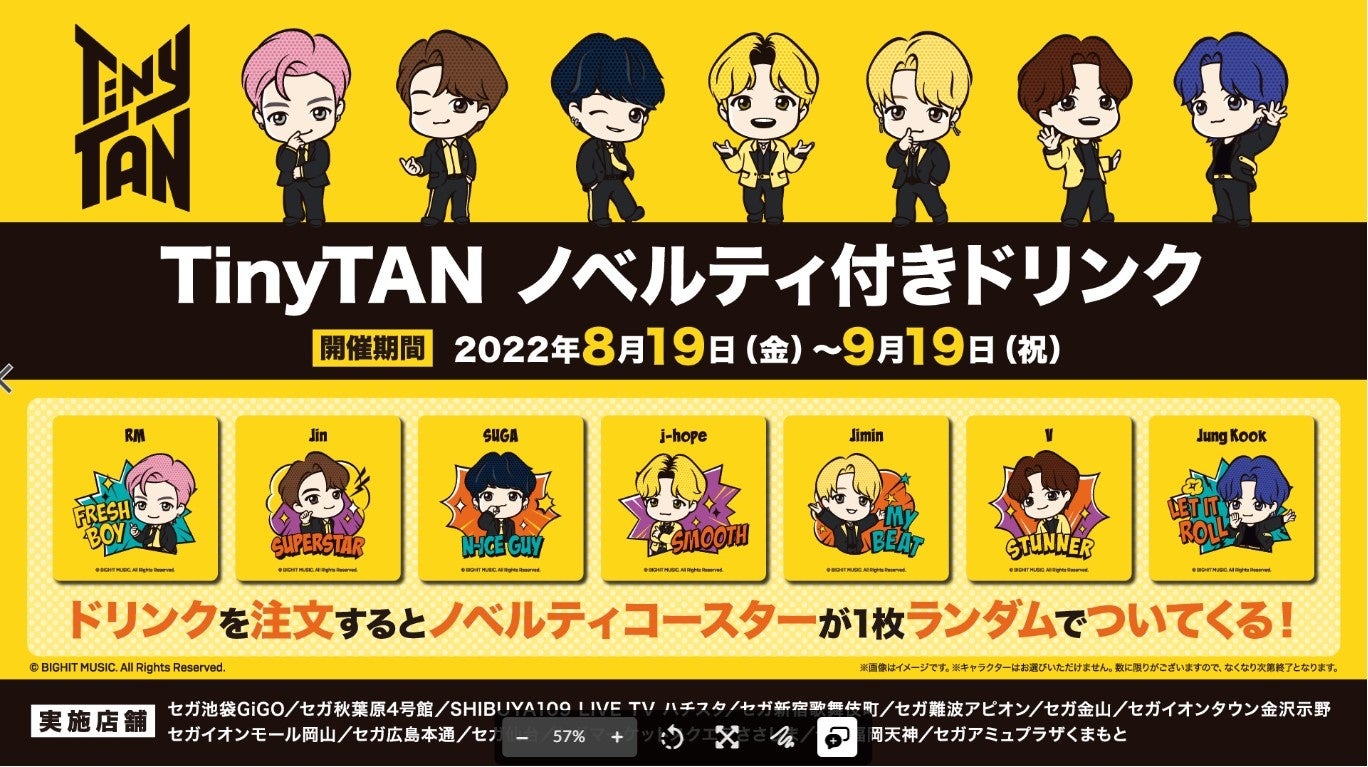 株式会社GENDA GiGO Entertainmentは、世界的人気を誇る「BTS」のキャラクター「TinyTAN」とタイアップしたキャンペーンを開催いたします。