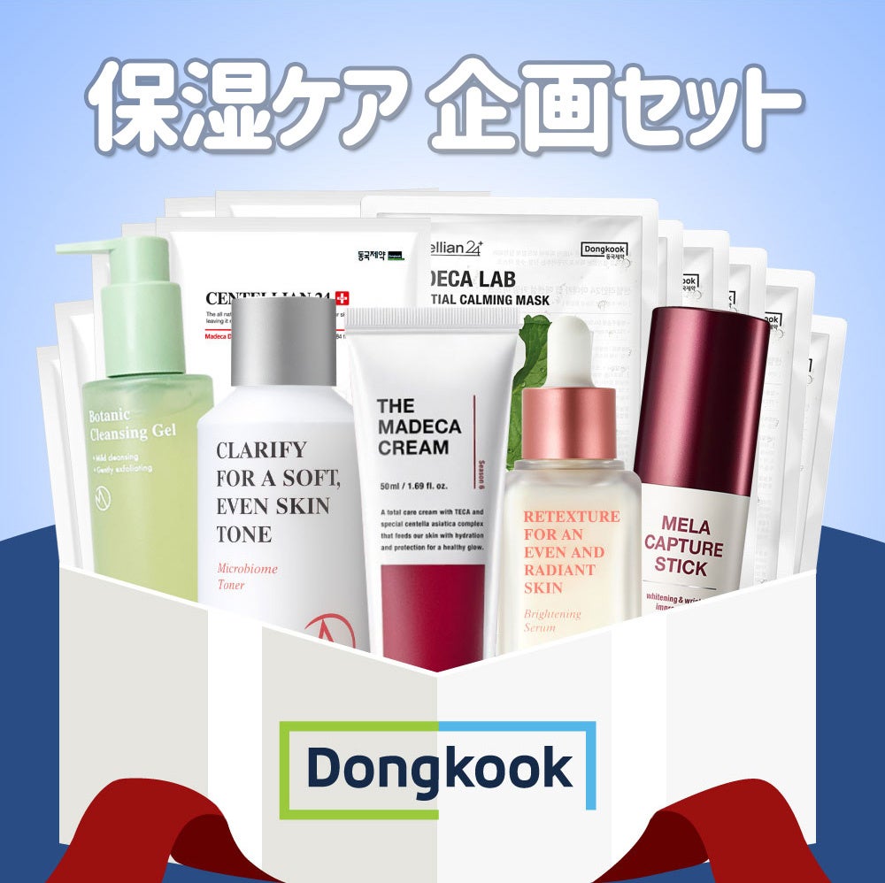 「Qoo10メガ割」のために用意された企画キットは、スキンケアの全ステップをカバーする7点が入ります。韓国で大ヒットした「センテリアン24」のクリームや、「マデカダーマ」など東国製薬の様々なブランドが楽しめます。