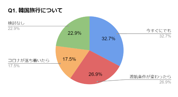 これら両国の規制緩和により、以前はハードルの高かった韓国への渡航がより現実的なものとなってきています。そうした動きを受け、韓国旅行の意向や動向に変化が出るのではないかと推測し、最新の動きやニーズを明らかにすべく当社SNSアカウントで独自に調査を実施いたしました。