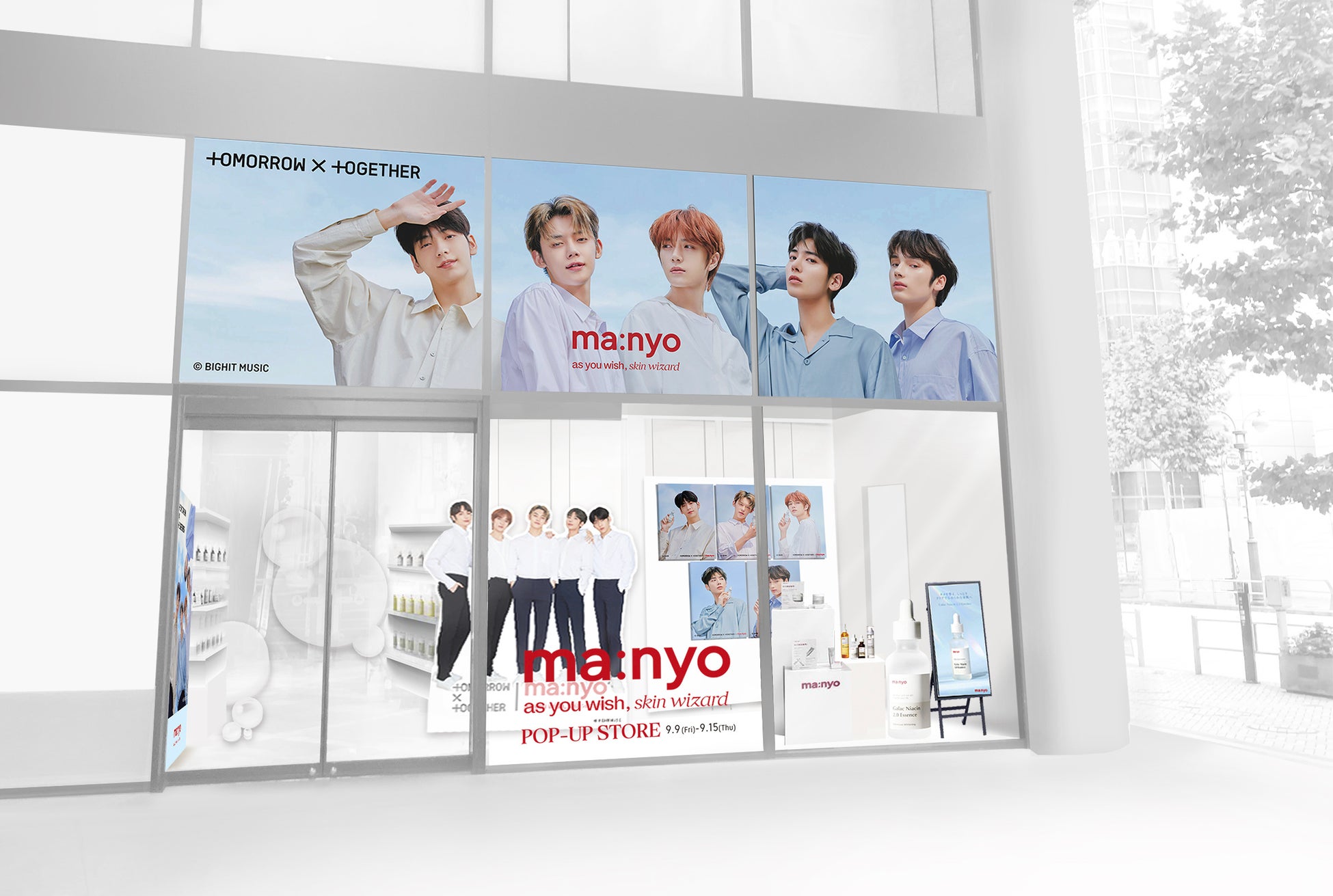 この度、9月9日(金)より渋谷MODIにて、グローバルアンバサダーであるTOMORROW X TOGETHERのコラボポップアップストアを開催いたします。夏の終わり、秋のはじめに健やかなお肌をお届けするために企画された今回のポップアップストアは、魔女工場の製品を税込み3,300円以上購入すると、TOMORROW X TOGETHERトレカ5枚セットがもらえます。また、ポップアップストアでは、TOMORROW X TOGETHERメンバーたちのユニークな魅力が盛り込まれたブランドムービーなどの未公開映像などが観られます。