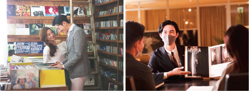 LUXEのスタジオをご見学頂いた後、カメラマンがお二人にぴったりのシーンで撮影いたします。
