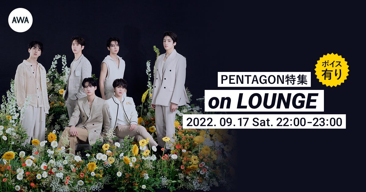 AWA株式会社が運営する、サブスクリプション型(定額制)音楽ストリーミングサービス「AWA(アワ)」は、2022年9月17日(土) 22:00~23:00の 60分に渡り、誰でも無料で参加できるオンライン空間「LOUNGE(ラウンジ)」で、PENTAGONの特集ラウンジを開催いたします。