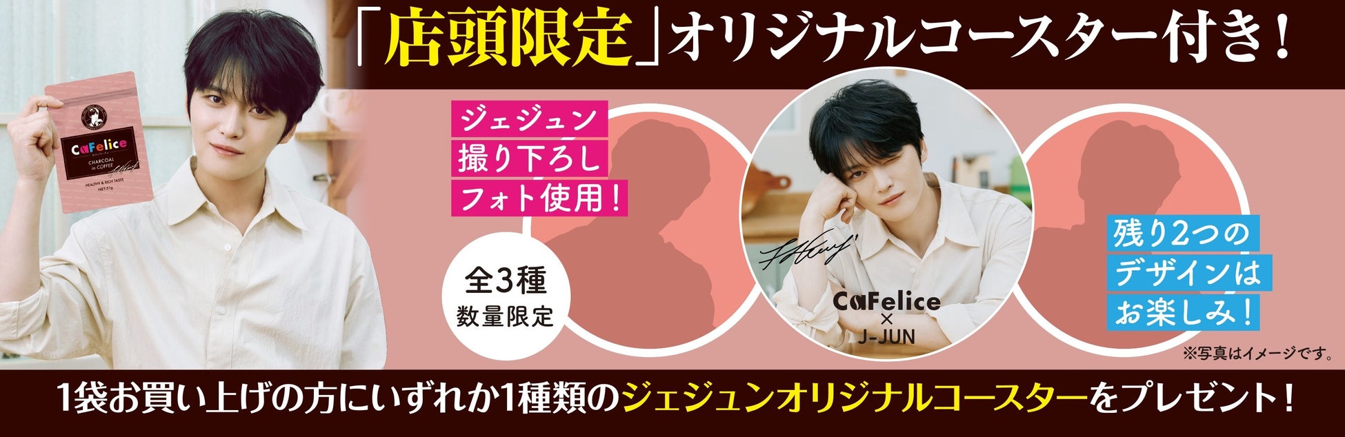 店頭販売限定ジェジュンパッケージの「CaFelice」は、ジェジュン撮り下ろし写真をあしらったオリジナルコースターが付いています。