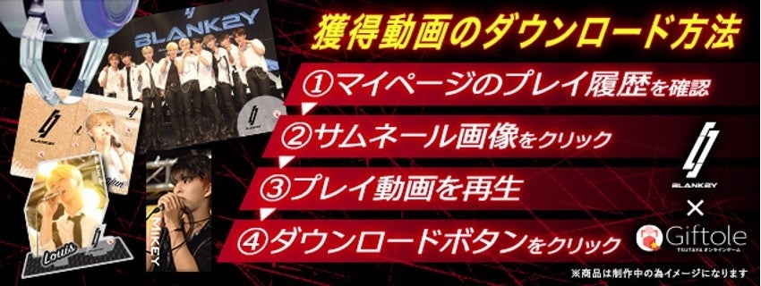 今回の来日にあたり、TSUTAYAとの特別企画を実施した「BLANK2Y」。 9月29 日(木)よりスタートした、店頭での特典会のみならず、現在、TSUTAYAオンラインクレーンゲーム「Giftole」でもイベントを実施中。その中で、なんと今回10月5日(水)18:30より、 「Giftole」でコラボグッズを獲得頂いた皆様の中から抽選で9名様にBLANK2Yのメンバーが「SHIBUYA TSUTAYA1日店長体験」で使用したネームプレートをプレゼントする企画がスタートいたします。