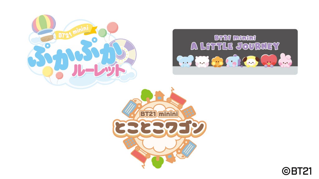 | 「BT21 minini ぷかぷかルーレット」 BT21 mininiが乗ったぷかぷか浮かんだ気球を模した立体型ルーレットです。 ゆらゆら気球にはBT21 mininiが搭乗しています。 ルーレットをまわすと気球がくるくる… 1プレイ料金:700円「BT21 minini A LiTTLE JOURNEY」 BT21 mininiの冒険ストーリーをテーマにしたタッチパネル式のミニゲームです。 画面をタップしてBT21 mininiの冒険をサポートしましょう。 1プレイ料金:700円「BT21 minini とことこワゴン」 BT21 mininiが乗ったトラックをイメージしたガラポンゲームです。 ガラポンを回すとワゴンが出発! 何度もチャレンジしたくなるガラポンです。 1プレイ料金:700円 |