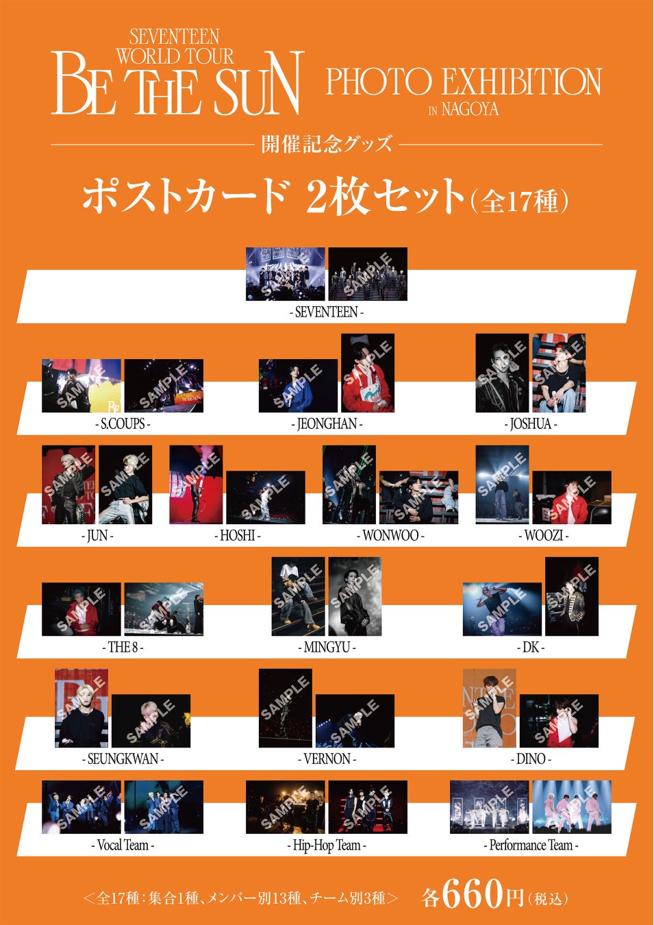 『SEVENTEEN WORLD TOUR [BE THE SUN] PHOTO EXHIBITION in NAGOYA』にご入場いただいたお客さまに、先着でソロブロマイドをランダムで1枚プレゼントいたします。