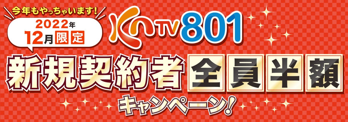 この『KNTV801』を対象に、2022年12月限定で新規ご契約者全員半額キャンペーンを実施いたします!