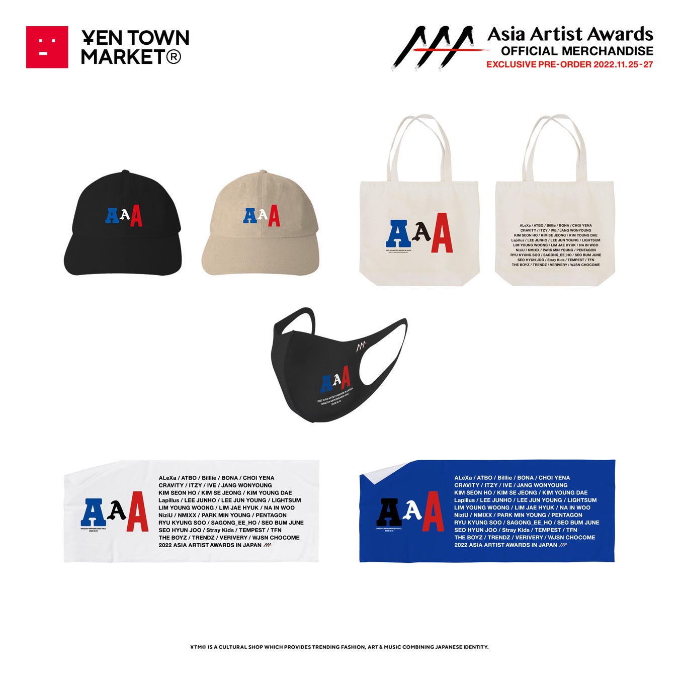 アジア最大級のアワード、そして日本初開催となる「2022 Asia Artist Awards in Japan」のオフィシャルグッズが本日11/25 (金)18:00 から 11/27 (日)23:59 の3日間限定の先行受注を実施。オフィシャルグッズに関しては、数々のブランドや企業とのコラボデザインなども手掛けるYEN TOWN MARKETがプロデュースと販売を担当。