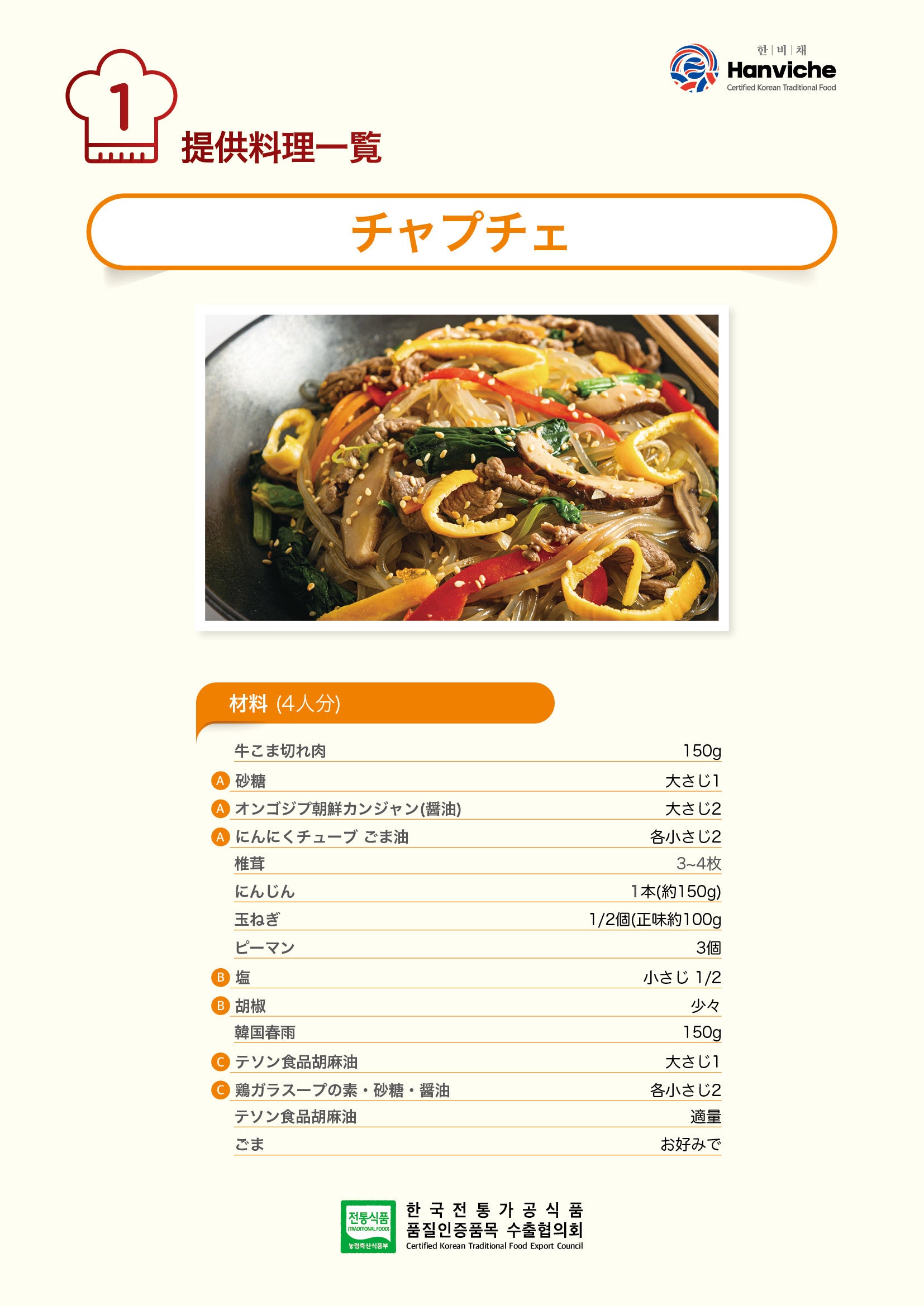 韓国伝統食品認定制度とは、韓国産の農水産物を主な原材料として使い、製造・加工・調理されて韓国固有の味、香、色を再現した優秀な伝統食品に対して、韓国政府が品質を保証する制度。生産者には高品質の製品生産を誘導し、消費者には優秀な品質の韓国伝統食品を供給するのを目的としている。
