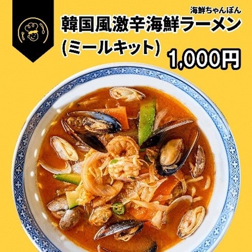 (1)韓国風激辛海鮮ラーメン:海鮮の旨味が凝縮されたスープにもちもちの麺が絡んで豊かな香りと食感をお楽しみいただけるCookeasy特製の海鮮ちゃんぽんです。海鮮と野菜がたっぷり入ったスープを麺にかけてお召し上がりください。