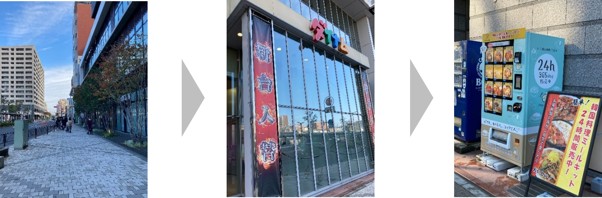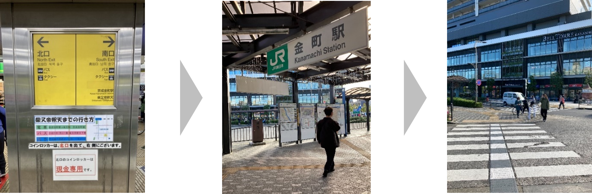 【自動販売機設置場所のご案内】JR金町駅南口から徒歩3分(東京都葛飾区金町6-5-8)(1)JR金町駅南口を出ると、ベルトーレ金町が見えてきます。