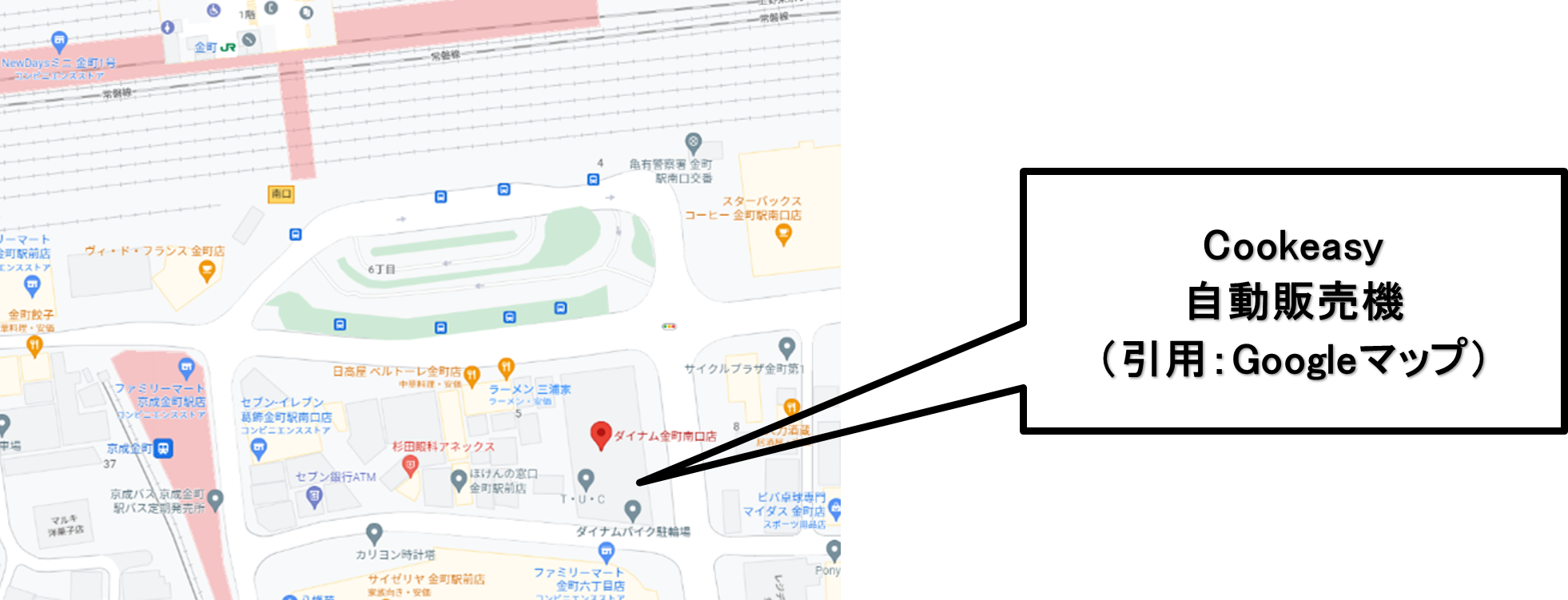 (3)ダイナムを右手で触りながら右に曲がると、壁沿いにCookeasyの自動販売機があります。