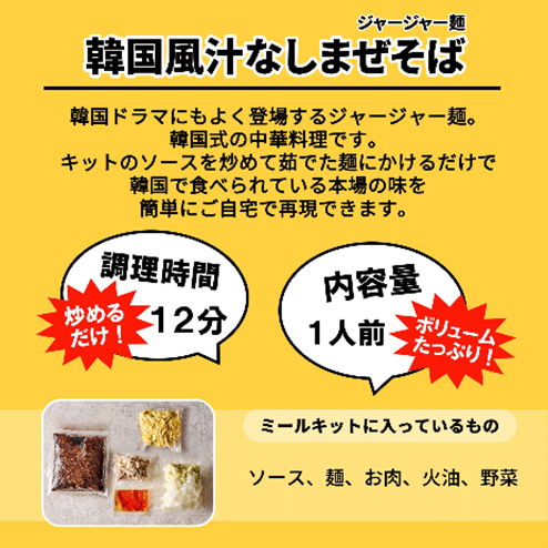 電子レンジで温めるだけですぐに召し上がれる人気ナンバーワンの「韓国風汁なしまぜそば」や小腹が空いたときにピッタリな「韓国屋台おやつセット」、お酒のつまみにもおすすめの「タコチャンジャ」のほか、全9種類をラインナップしています。