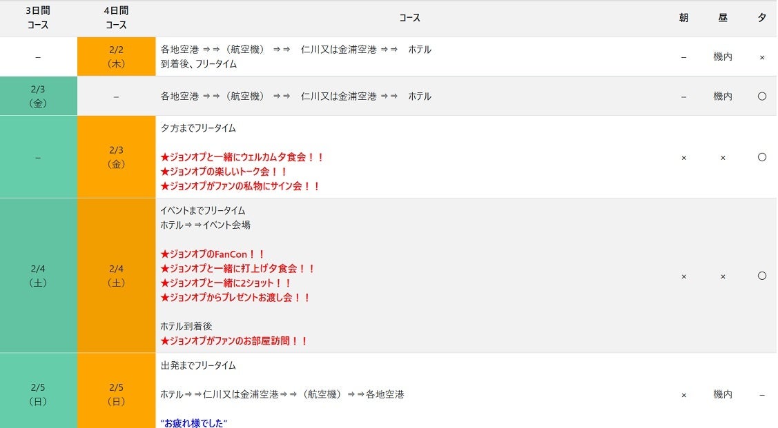 今回のツアーは、現在はソロとして活動しているジョンオプと、真っ白な韓国であったかい時間を一緒に過ごそうというファンにとっては最高の時間となるイベント盛りだくさんの韓国ツアーです。