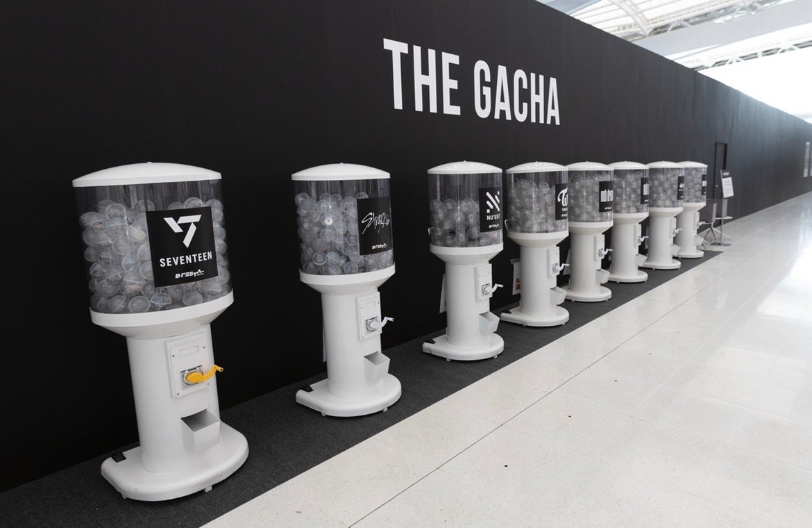 ご希望のグループのピンボタンを封入したガチャが登場。各グループメンバー各1点+グループ集合1点の中から1種が当たり、さらにグループロゴプリントピンボタンがランダムで入っている仕様となります。