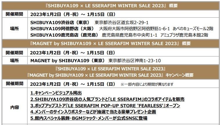 特設ページ:http://www.shibuya109.jp/x/LESSERAFIM_WINTERSALE2023