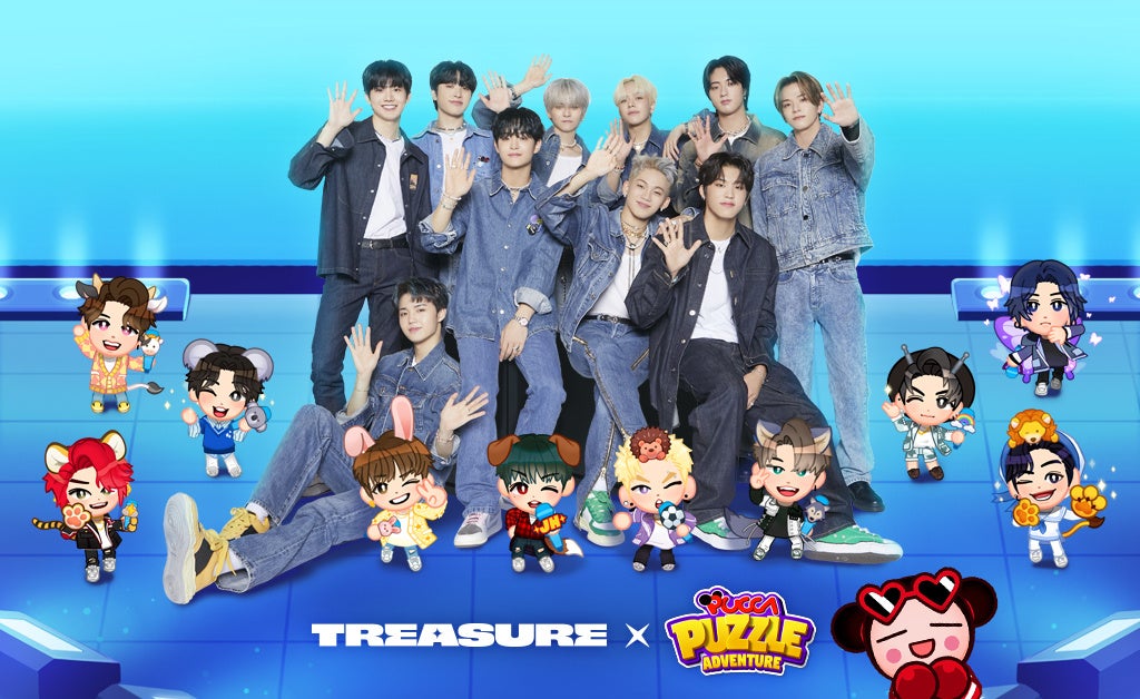 『プッカパズルアドベンチャー』は、韓国を代表するキャラクター『プッカ』を用いたモバイル3マッチパズルゲーム。TREASUREは、各メンバーの個性が生かされた10種類の限定キャラクターとしてゲームに登場します。またこの限定キャラクターは、彼らの魅力やニックネームを元にデザインされたもので、キャラクターごとに振り付けを活用したゲームスキルを使用します。本ゲームは1月下旬より配信開始予定で、リリース後はファンのための<TREASURE専用ステージ>も登場します。
