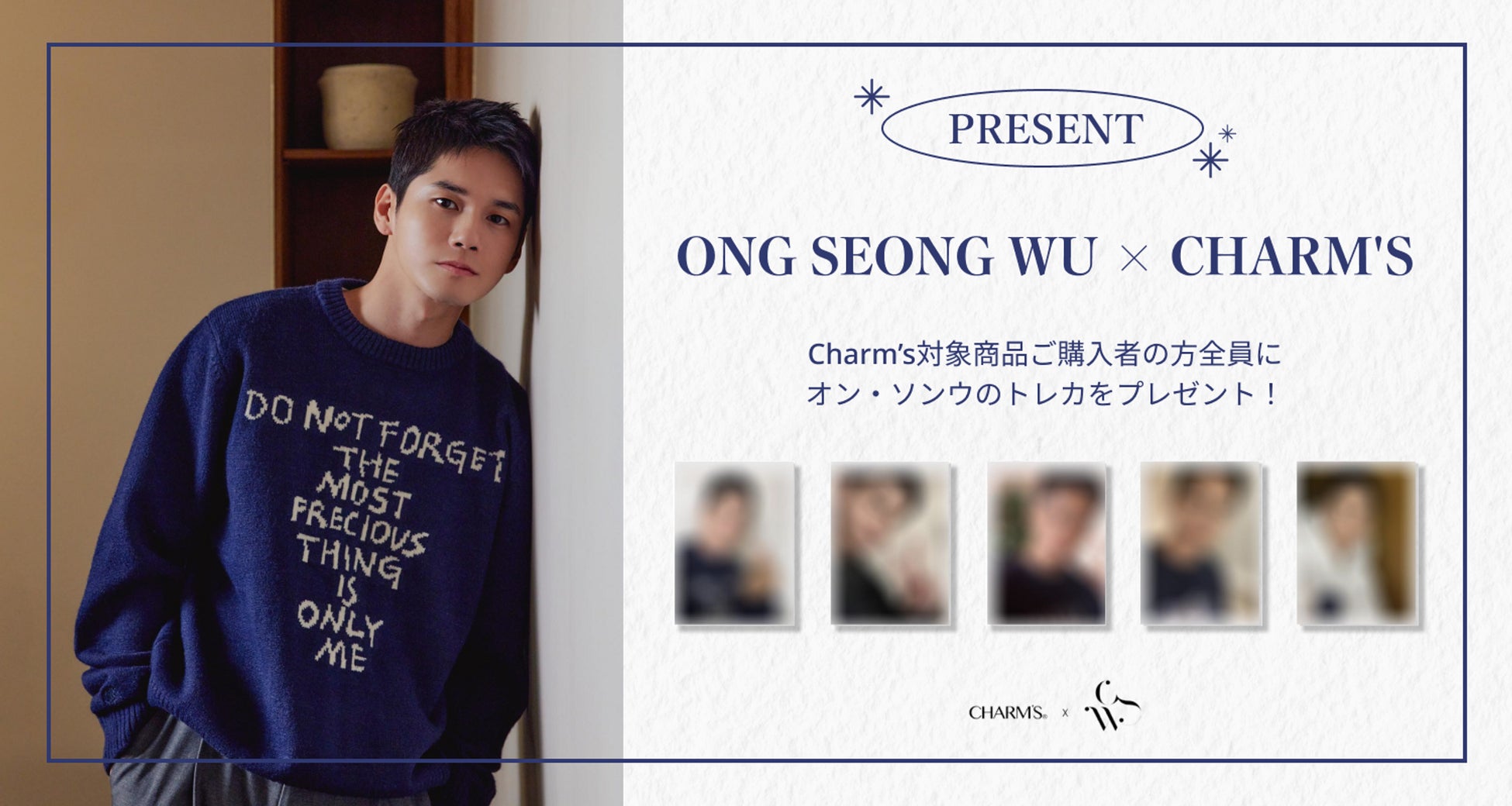 韓国・ソウルで誕生し、韓国のみならず日本でもZ世代を中心に人気を集めるアパレルブランド「チャームス(CHARM'S)」と、Wanna Oneのメンバーでアーティスト・俳優の「オン・ソンウ (ONG SEONG WU)」との初コラボレーション商品が、アジアから900ブランド以上が集まるオンラインストア「60%」(シックスティーパーセント)で発売決定。CHARM'S対象商品を「60%」サイトで購入した方全員を対象に、トレーディングカードがプレゼントされる。販売期間は1月13日(金)18:00 ~ 1月27日(金)17:59までの期間限定となる。