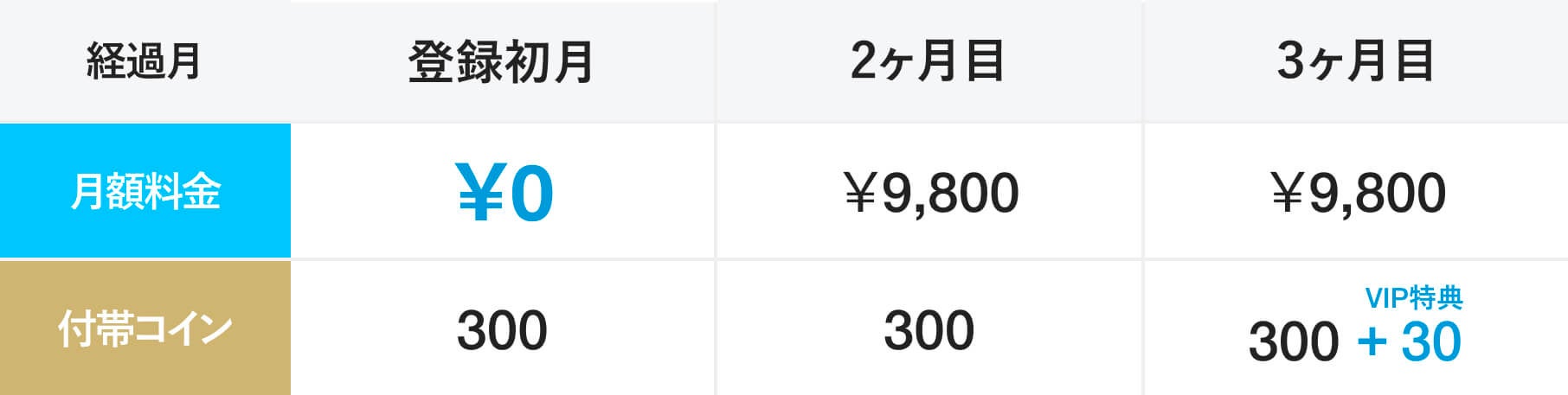 ・2ヶ月目・3ヶ月目の料金は、通常の9,800円となります。