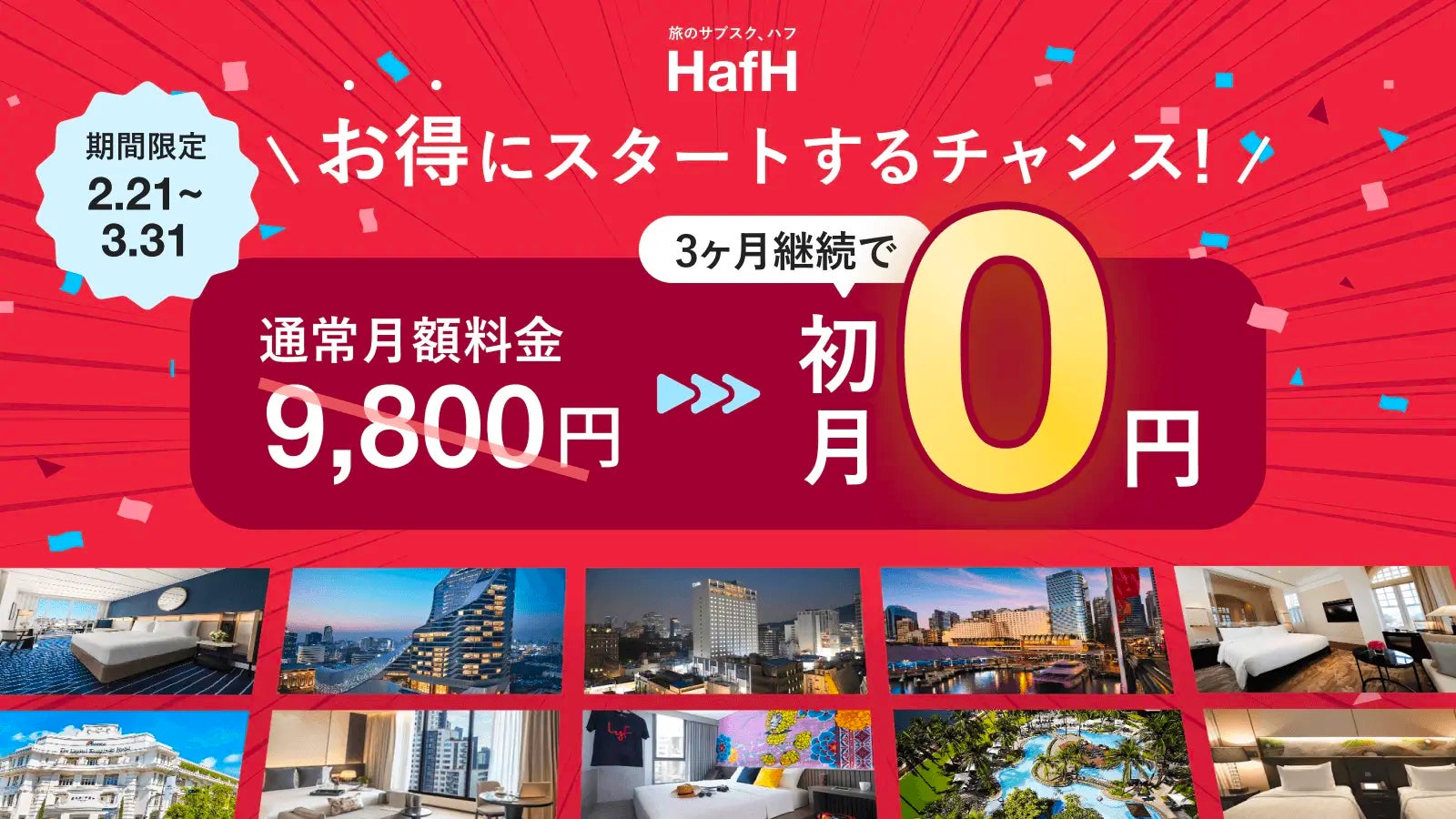 2023年2月21日より、春の大型キャンペーン「はるハフ旅」を開催します。本キャンペーンは、新規会員・既存会員ともに、旅のサブスク(TM)「HafH」をもっと楽しむための大型キャンペーンです。