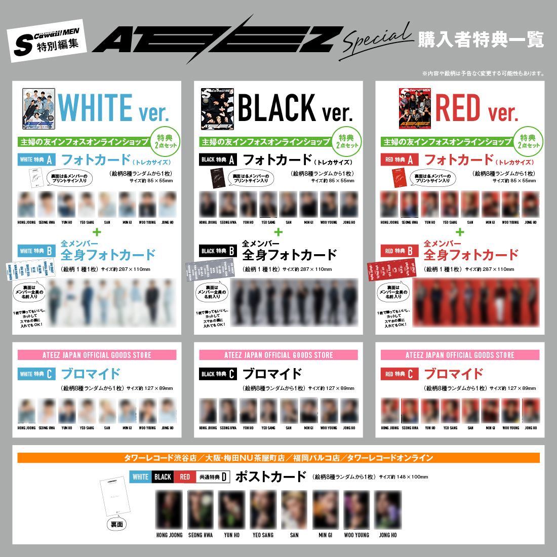 『S Cawaii! MEN特別編集 ATEEZ Special』の「WHITE ver.」「BLACK ver.」「RED ver.」を購入いただいた方に特典を差し上げます!