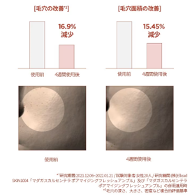 毛穴の数や深さ、密度、面積など様々な角度から分析。ポアマイジングラインを4週間使用し続けることによって、毛穴が目立たない滑らかな肌に