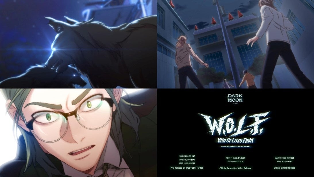 「W.O.L.F. (Win Or Lose Fight)」は、Naver WEBTOON worldwide serviceで連載されている『黒の月: 灰色の都市』Webtoonの15話で音源の一部が公開されます(日本語版のLINEマンガでは3月14日午前0時の公開)。また同日にはWEBTOON作画とOSTが融合したプロモーションビデオが公開され、全曲は3月17日に全世界の音源サイトとストリーミングプラットフォームで配信される予定です。