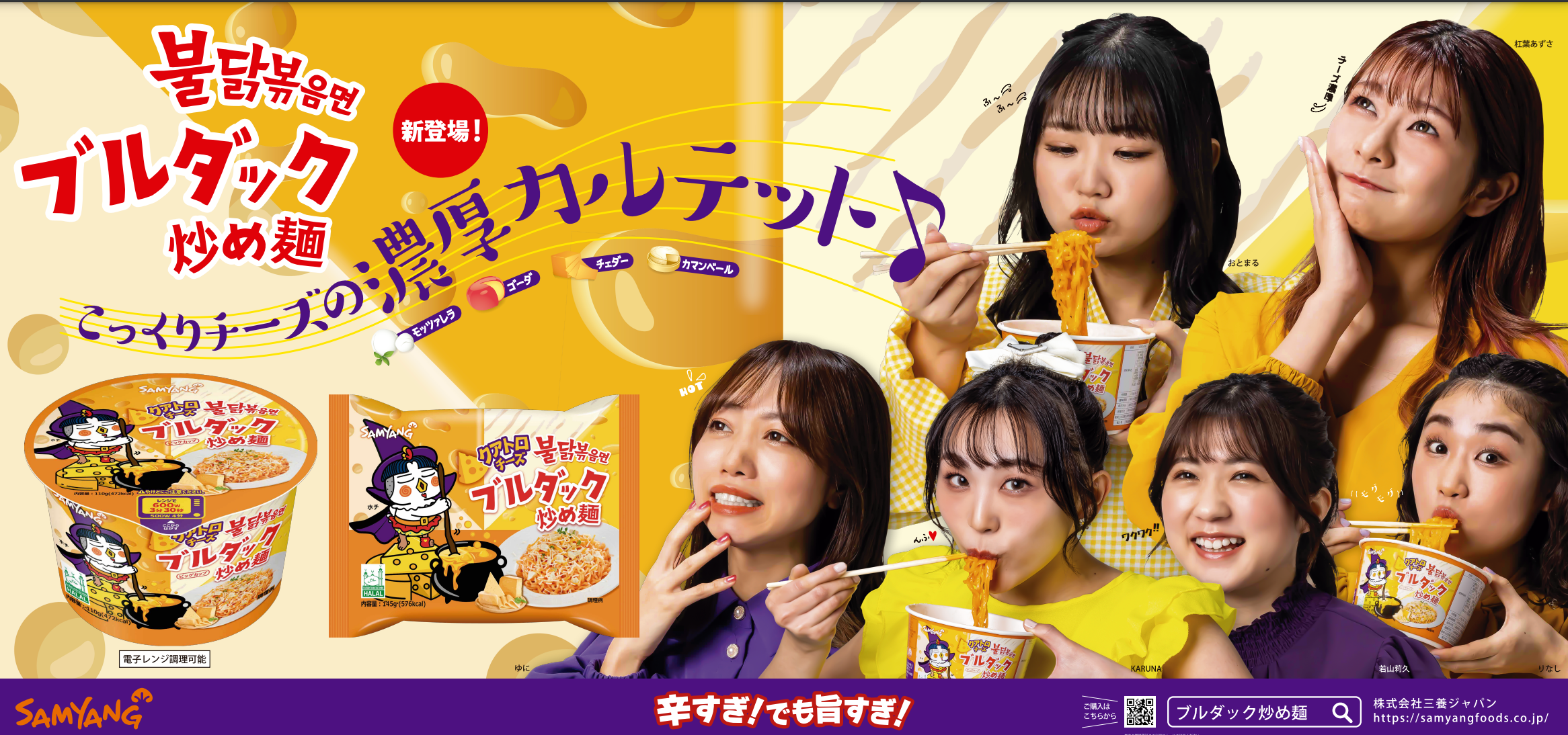 新商品である「クアトロチーズブルダック炒め麺」をおいしそうに食べるライバーたちに食欲をそそられる広告に、大きな注目が集まりました。