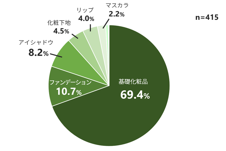 全体の約70%の方が基礎化粧品(スキンケア用品)をこだわりのアイテムとして選びました。
