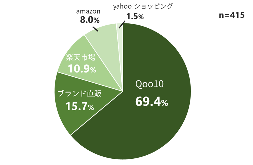 全体の約70%の方がネットでコスメを購入するのはQoo10を利用すると回答しました。