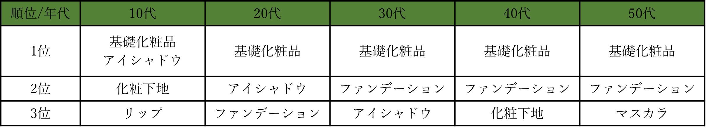 コロナ禍でマスク着用により肌が荒れてしまうという状況もあり、全世代でスキンケア重視に変わったことも影響していると思われます。