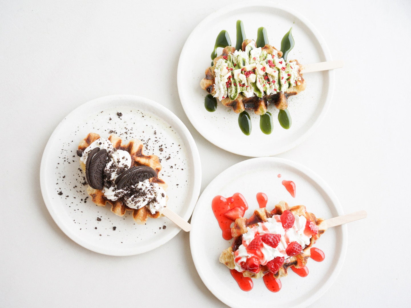 ヨーロッパ産ピュアバター100%使用のクロワッサン生地をワッフルメーカーで焼き上げて作る、韓国生まれの新食感スイーツ【クロッフル】。中はふわもち外はサクサクの新食感スイーツとなっています。