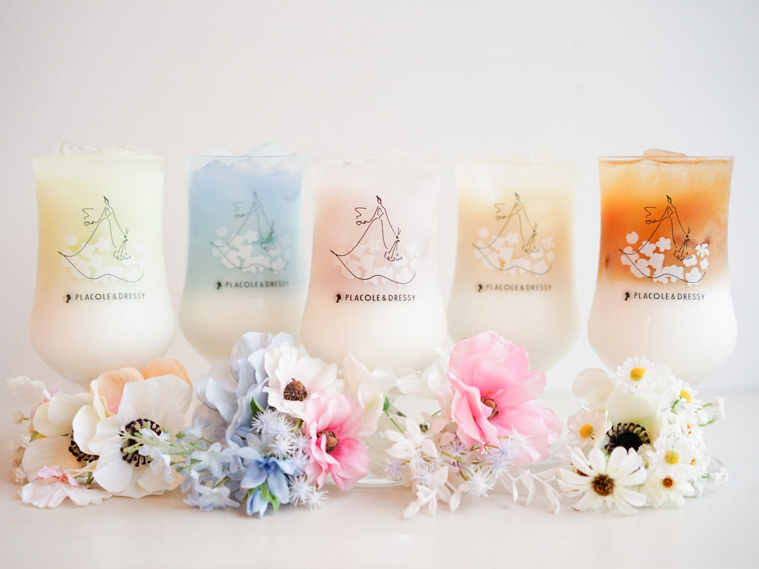 『個性が煌めく魔法の言葉』 "100人の人生に100通りに煌めく魔法をかける"をテーマに創設された古都鎌倉発のラグジュアリーブランド、PLACOLE&DRESSY(プラコレ&ドレシー)がプロデュースするカフェ&バー、『お花とドレスと紅茶のお店 DRESSY ROOM&Tea』が、4月1ヶ月間は期間限定「韓国っぽフェア」を開催いたします。昨年好評をいただいた韓国っぽフェアが今年も開催決定。韓国発の人気スイーツクロッフルをはじめ、大人気のフラッペには贅沢にマカロントッピング。 オリジナル配合の紅茶には王道アールグレイが仲間入りし全12種類になりました。他にもオリジナルティーを使用したロイヤルミルクティー、ふわふわ食感の韓国式かき氷ピンスなど、鎌倉で韓国気分をご堪能ください。
