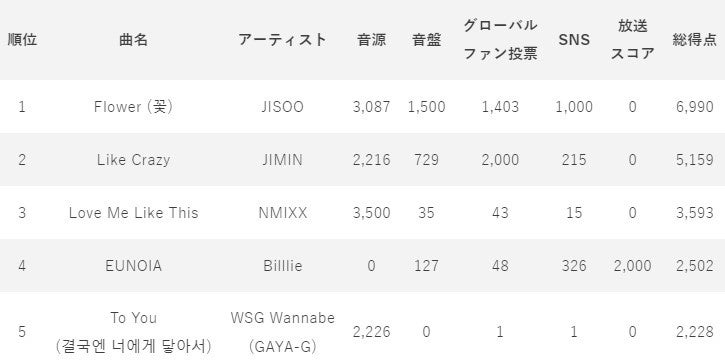 | ■4月5日(水)の放送回でJISOOのFlower (꽃)が総得点で1位を獲得しました! |