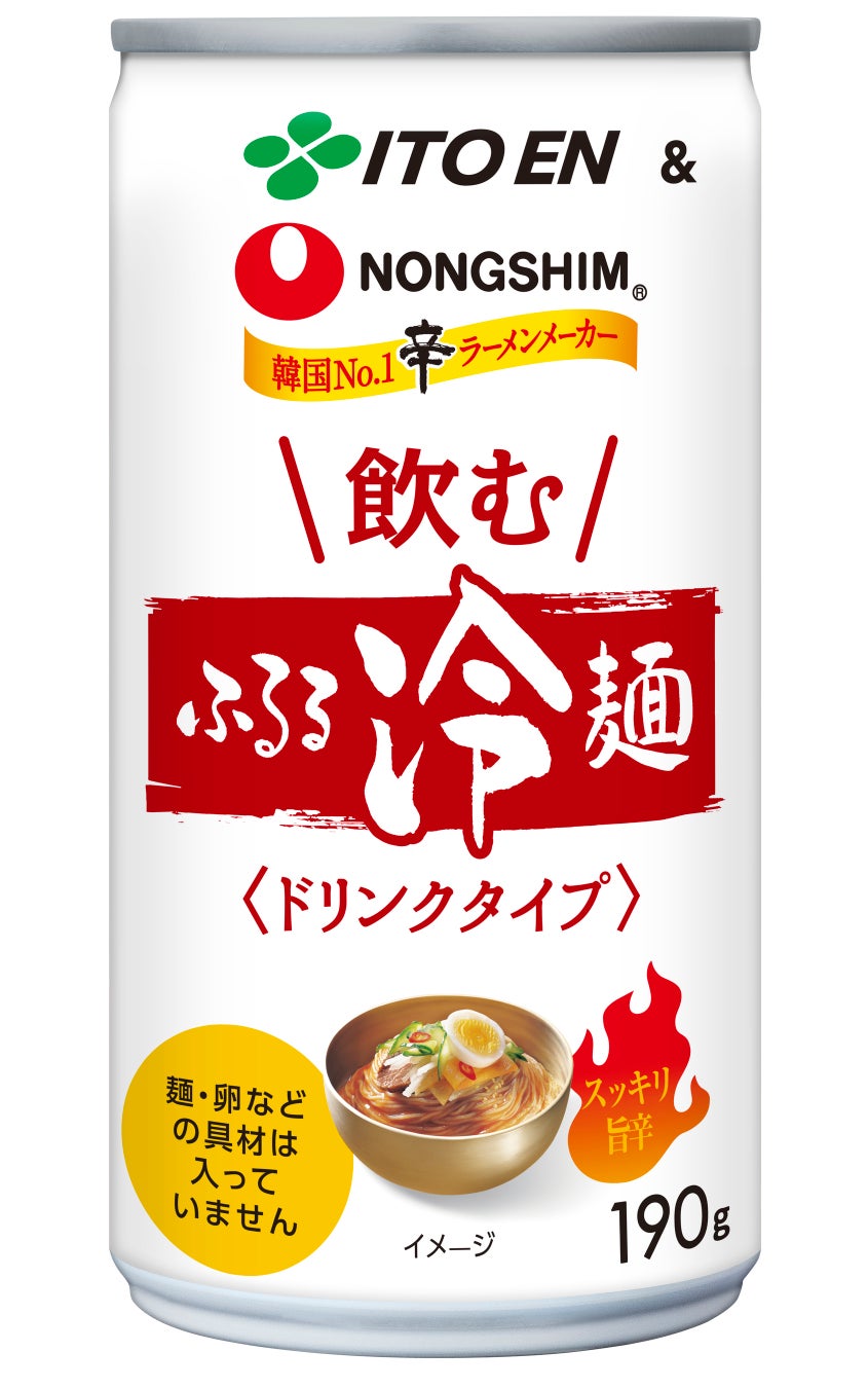 今回は、「辛ラーメン」のように人気が高い「ふるる冷麺」で商品化。当社と伊藤園で原料選定から共同で製品開発を行い、「飲む ふるる冷麺」では冷麺ソースやキムチエキス、コチュジャン、お酢などを使用した本格的な辛味飲料製品となっています(※)。春夏にすっきり飲める味わいに仕上げているため、昼食など食事のプラス1品として、また小腹が空いた時に好適な辛味飲料としておすすめです。
