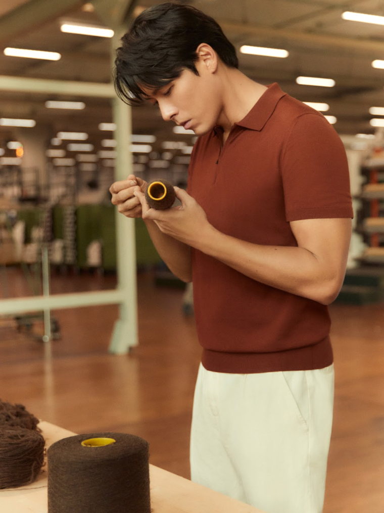 カラーにも自然への想いが込められています。深みのあるフォレストグリーン、砂と赤土の温かみのあるアースカラー、そして大地と水の出会いを表現したエレガントなティールブルーは、ヒョンビンとロロ・ピアーナが心から提唱する、アウトドアで過ごす日々の活力を表現しています。「このプロジェクトは、私がロロ・ピアーナと共有する自然とアウトドア生活への愛から誕生しました。私たちは自然と密接な相互依存関係を築いています。メゾンは最高品質の天然繊維からタイムレスでエレガントなハンドメイドのウェアを製作し、私は優れた仕事をするために、自然への逃避と憧れを抱いています」と、2021年からロロ・ピアーナのブランドアンバサダーを務めるヒョンビンは語っています。彼は、ミラノのロロ・ピアーナ本社でのミーティングと工場訪問を通して、メゾンのチームと一緒にこれらの製品をつくり上げました。