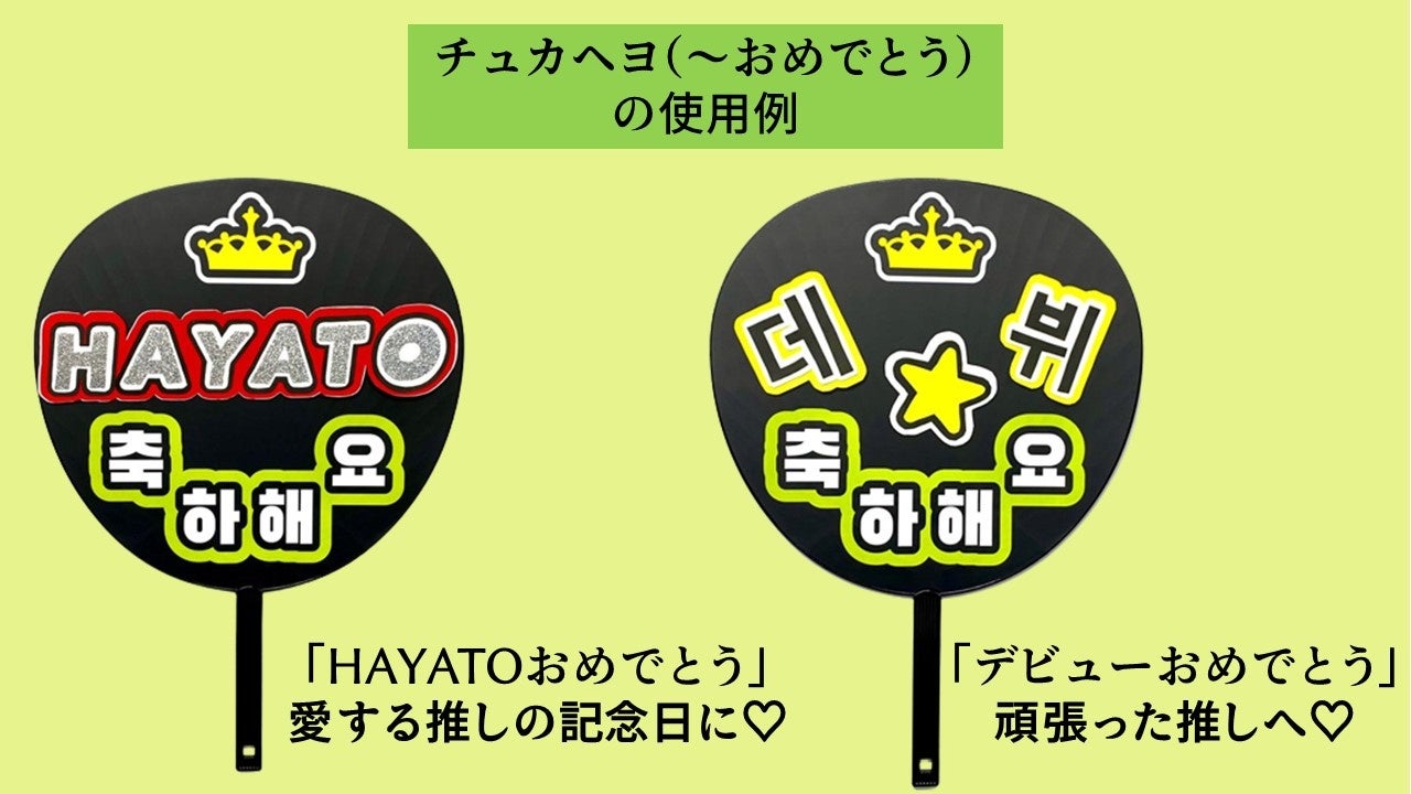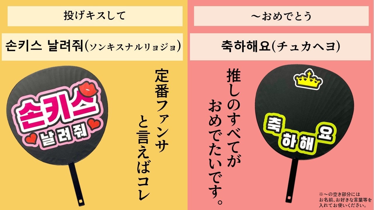 大好評だった第1弾日本語Ver.に続き、ファンサメッセージが韓国語(ハングル)で片面にデコレーションされたうちわです。