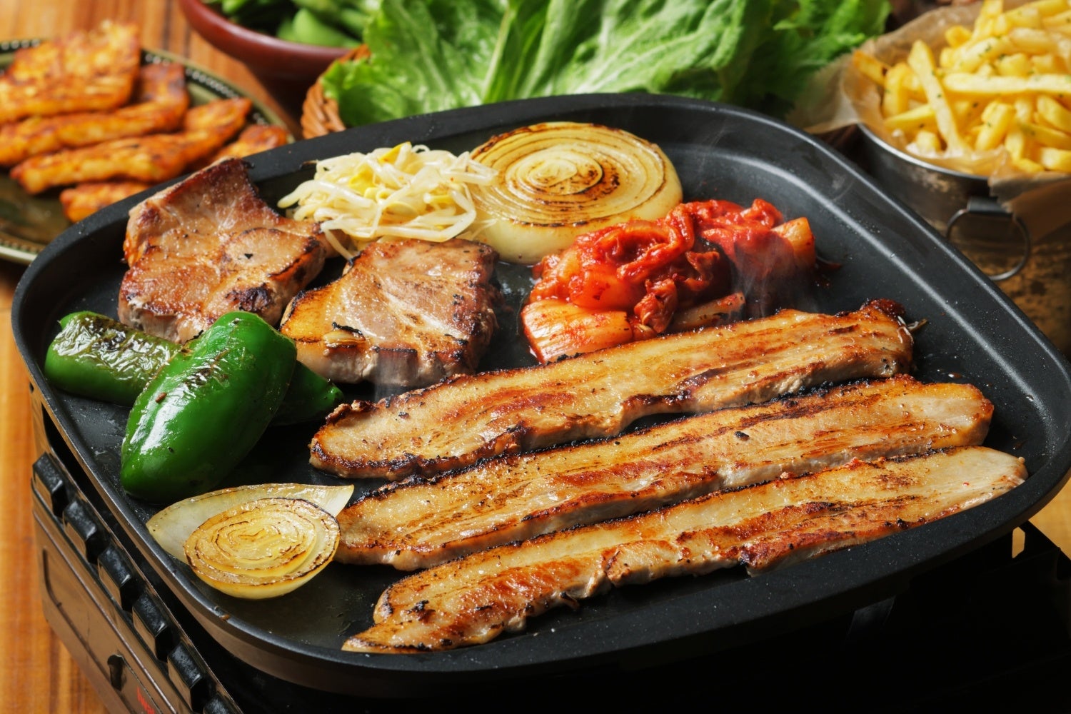 人気のサムギョプサルコースに食べ放題プランも登場、韓国の伝統酒マッコリも飲み放題で韓国BBQを楽しめる屋上ビアガーデンです。