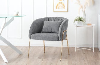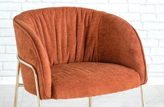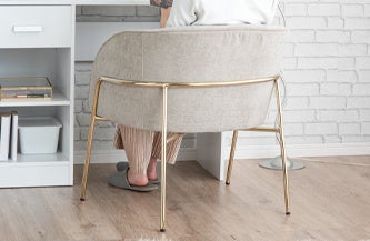 華奢でスタイリッシュなゴールドフレームがこのチェアの高級感をグッと高めています。細く曲線を描くように伸びるゴールドフレームがアクセントになり、周りのインテリアやくすみカラーのフェミニンな雰囲気をより一層引き立てます。背もたれの後ろまで伸びたフレームが、チェアの後ろ姿まで美しく見せてくれます。