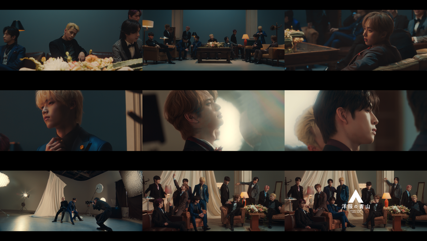 新CMでは、INIのメンバー11人がそれぞれ店頭やオンラインストアで展開するブラックフォーマルに加えて、当社が運営するレンタルサービス「ハレカリ」の華やかなパーティーフォーマルも着用。メンバーカラーに合わせたブートニエール(飾り花のアクセサリー)をアクセントにコーディネートしています。今回は、フォーマルの雰囲気に合わせたクールでカッコいいCMの構成としており、前回のフレッシャーズCMの激しいダンスやアクションとはまた違う表情や演技などにも注目です。