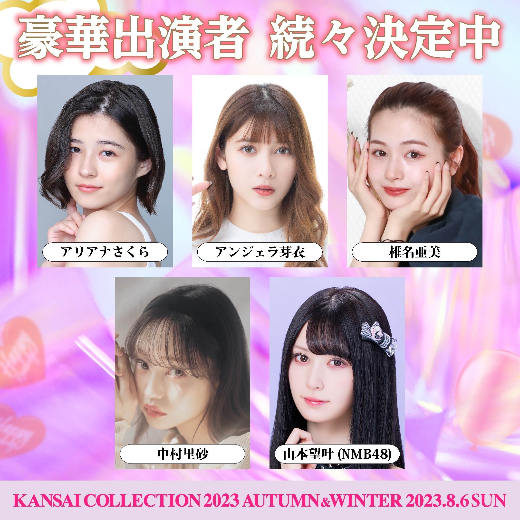 関西コレクション実行委員会(企画/制作:株式会社KANSAI COLLECTION)は、2023年8月6日(日)京セラドーム大阪にて、第25回目の記念開催となる『KANSAI COLLECTION 2023 AUTUMN&WINTER』を開催いたします。この度、追加出演者情報が決定しましたので、お知らせいたします。