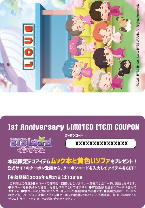 BTSのメンバーが開発に参加したスマートフォン向けパズルゲーム「BTS Island:インザソム」のリリース1周年を記念したムック本『BTS Island:インザソム 1st Anniversary BOOK』を6月22日(木)に発売します。